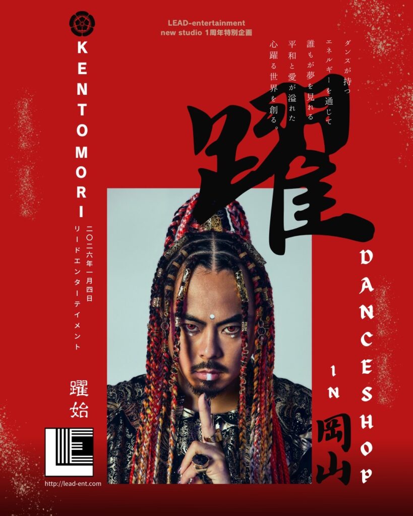 また、年明けには新スタジオ1周年企画スペシャルワークショップと致しまして、あのマイケルジャクソンやマドンナからも認められた世界のダンスアーティスト、KENTO MORIさんが6年ぶりに岡山に来られます!0歳から100歳まで楽しめるダンスショップを是非ご堪能下さい!